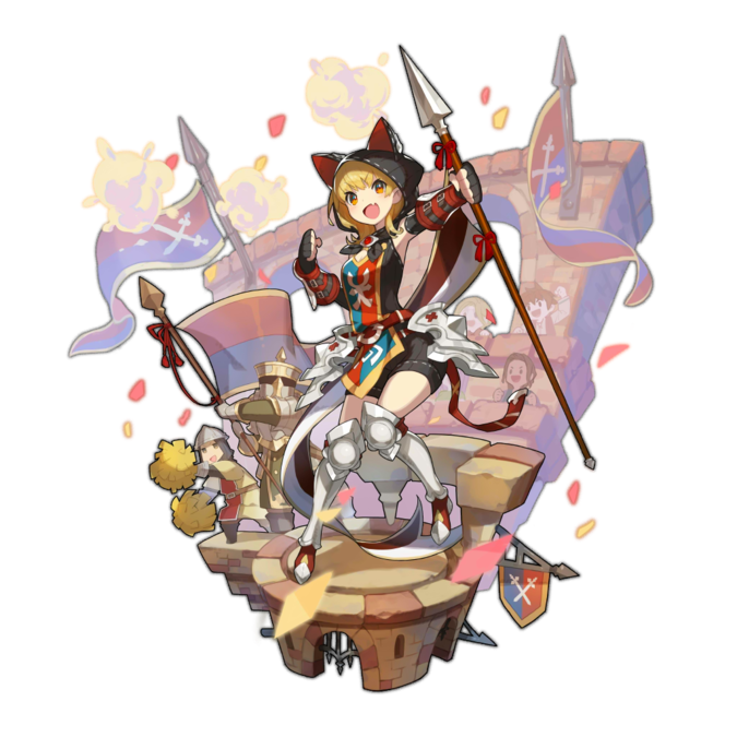 A receptionist and cheerleader from Apollonia. Her personal mission is to cheer everyone she can. She believes that even the saddest of lifes has some happy moments, and it's always worth to keep living.