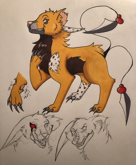 They’re very interesting to draw with their three heads and six floating eyes. This is the first time I’ve drawn their full body.