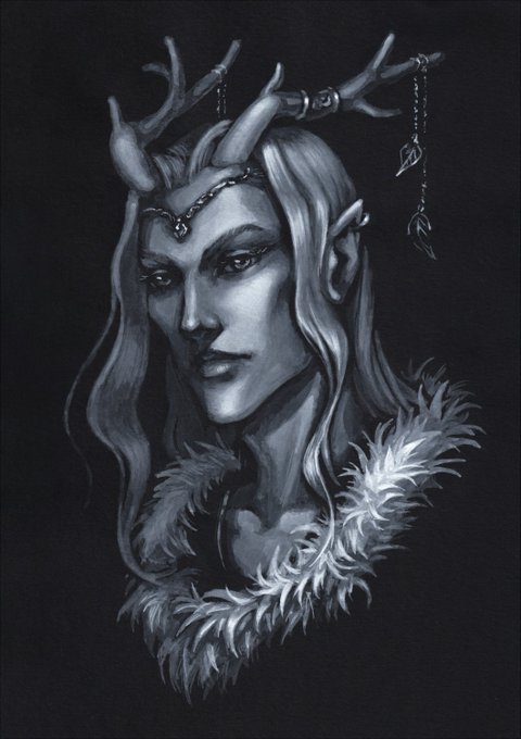As I said in previous tweet - I'm taking a break from my graduation work drawing some sketches, this one is painted with white tempera colour on black paper, using glaze technique. And it's pretty small for this technique >_<