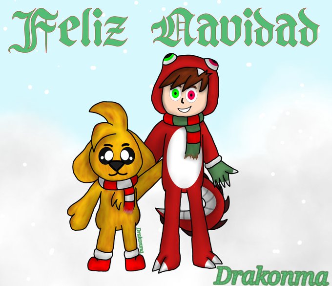 Bueno @MikecrackYT o @Raptorgamer_ no me felicitaron pero igualmente subo ya el dibujo especial de Navidad de estos dos con sus ropitas navideñas espero que os guste feliz Navidad y ahora me voy a mimir