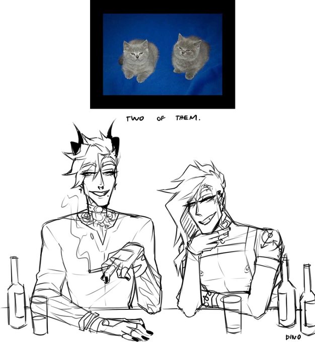 When will Twitter make imagesets larger than 4 pictures, i have a lot of bullshit in me. Anyway two horrible bastards. #oc #art // J - @Nikyriart