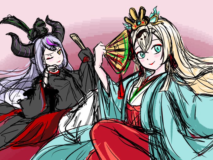 じゃあこれの続きを描きますわ!! 一応、いろはがお雛様、ラプラスがおだいりさま…みたいにしたかったんだけど、ちょっと無理があるかな🤣 #いろはにも絵を #Laplus_Artdesu