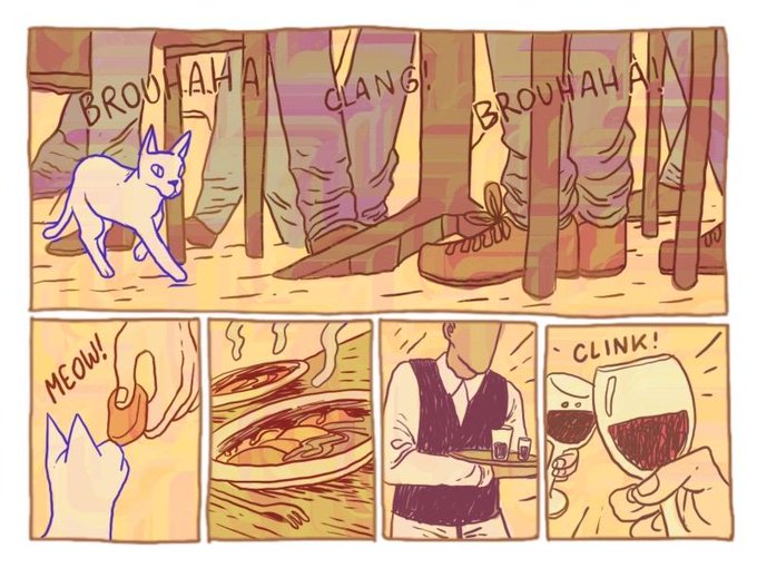 @Gerypencil nous gratifie d'une bande dessinée douce et belle, aux magnifiques couleurs et aux doux goût de souvenir du chat du rabbin du génial @joannsfar !