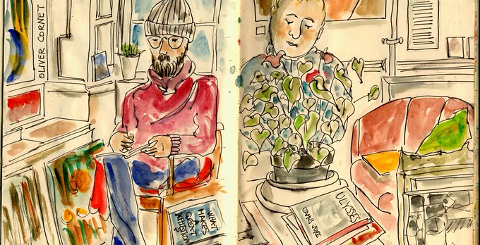 Sketch from @NatPrintMuseum for #JamesJoyce #Ulysses inspired sketch crawl leading to @DrawingonJoyce exhibitions for #bloomsday2018
