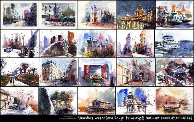 I reviewed 161~180th paintings which I painted on Saunders Waterford rough papers/ cotton 100% / 300gsm/ quarter size.