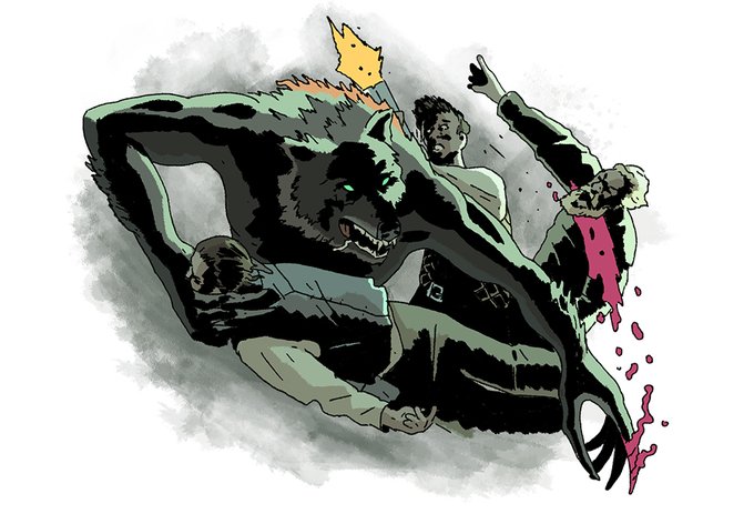 POW! Some old(er) SHIVER spot art of a gnarly werewolf attack #fantasyartist #ArtistOnTwitter #traditionalart #ttrpg #characterdesign #shiverpg #rogue #rpg #art #horrorart @GamesParable