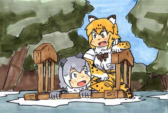 #けものフレンズ #けもフレわんどろ 「いっしょ」 ジャガーに乗せてもらってるカワウソ。今回はカワウソがジャガーを乗せて移動中。