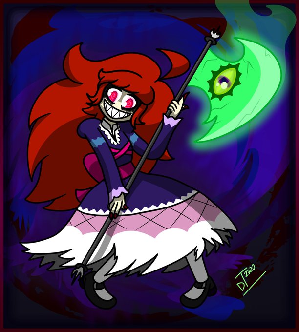 New scary OC, just in time for the spookiest of months, too! Don't have a name for her yet, all I know is she uses nightmare magic and feeds on fear to increase her own power. The eye on her axe can see your worst fears and bring them to life. 😱👁️