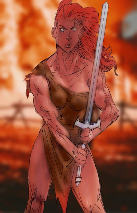 My cousin Charlie Hood inked and colored my Red Sonja pencils and I gotta say, it's an improvement! #RedSonja #FANART #dynamitecomics
