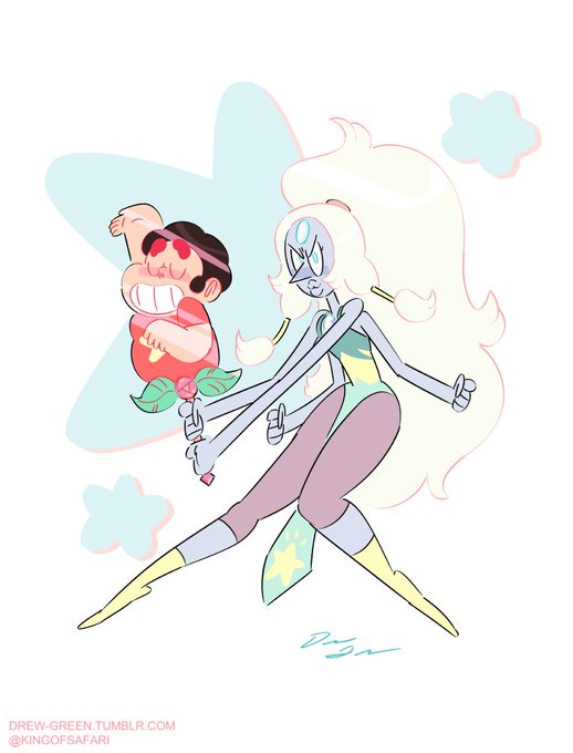 I told @rebeccasugar I'd draw her something cool for doing me a small favor, so I drew Opal with a Steven Magisword. <3