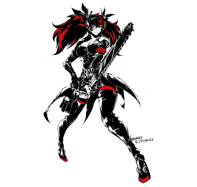 Commission for @Zataru22 of their OC, first chainsaw I've drawn on stream lul.