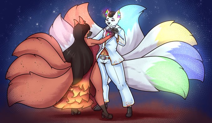 A pair of cuties. Ember (left) and Glint (right) enjoying a lovely dance together~💃🕺