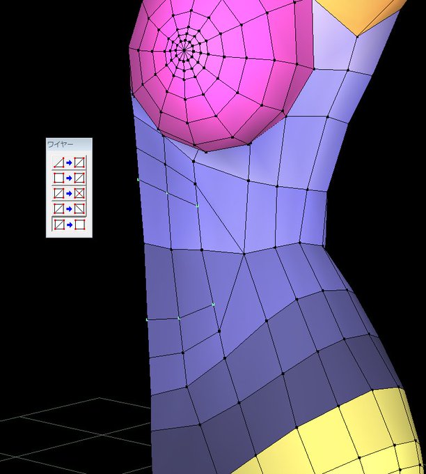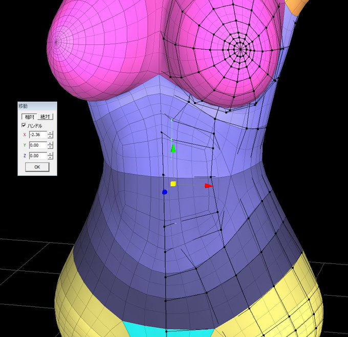 見やすいように曲面化を適用してなかったですが、改めて曲面モードにすると腹周りに腹筋っぽい流れが出来てます(3枚目)