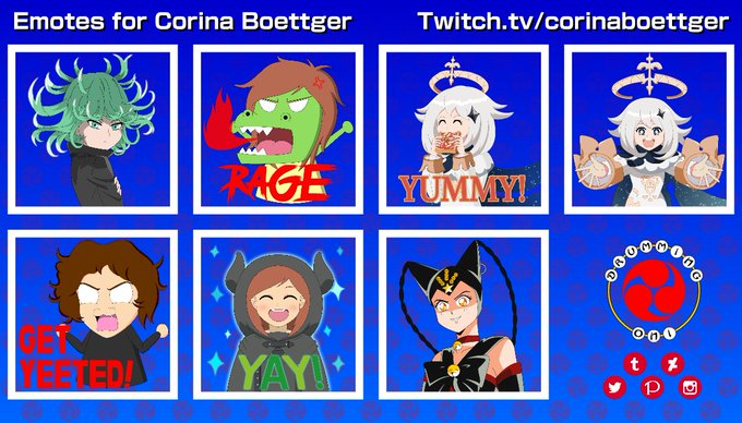 @childishgamzeno Here are some samples I've drawn. I've made emotes for voice actor @CorinaBoettger. Here is the link to my pricing sheet if you're interested.
