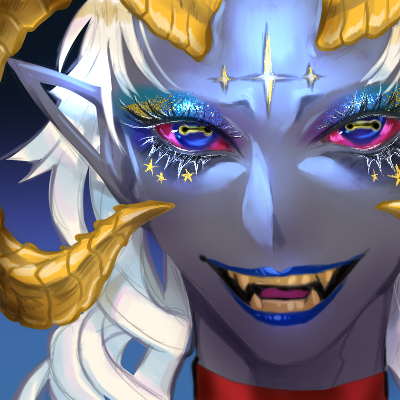 三原色揃い踏みなド派手お目目に更にラメと★!!!!あと悪魔だし山羊目かと思ったけどタコ目かもしれない…まさか……