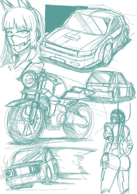 落書き詰め④ #オリジナル #落書き #練習 #メカ #バイク #八尺様 #絵の魔人 #メイド #くのいち #車 https://t.co/nqEuiniCdS