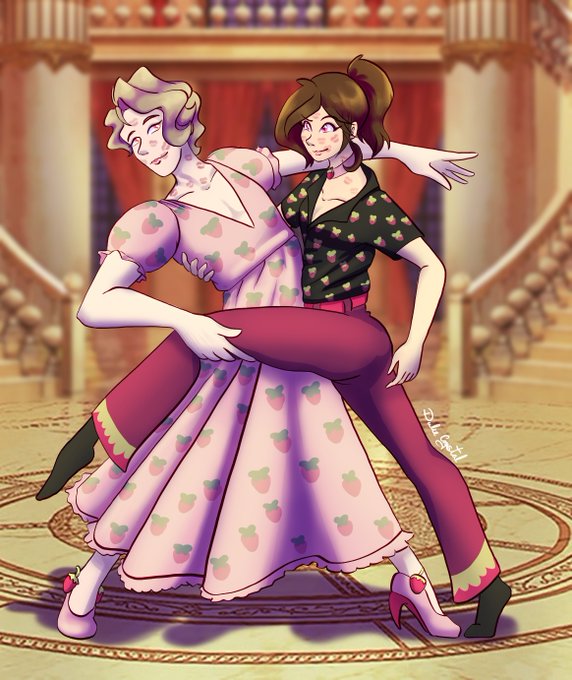I had this drawing that I made like two months ago XD but for some reason I forgot to upload it, anyway, even when I already had it I'm late for Asmo's birthday QvQ (and the strawberry dress trend) btw, the background belongs to OM and Solomare