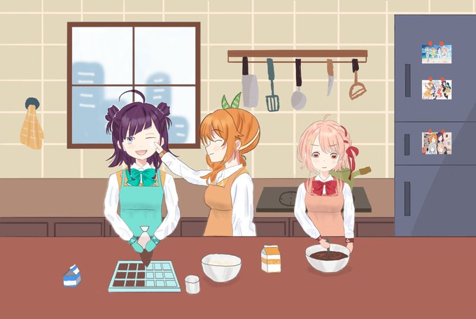 一緒にチョコを作る少女たち #鹿乃art #はなまるお絵かき #ひとなーと