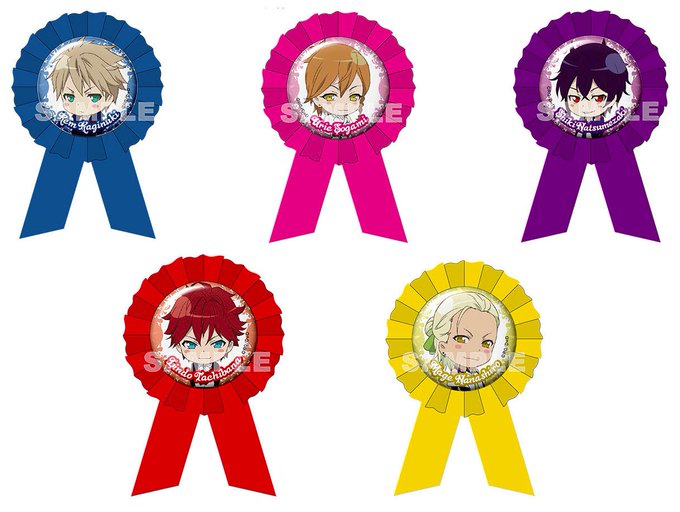 【新商品①(再掲)】12月発売グッズが続々解禁!SDキャラを使用したロゼット缶バッジと、かわいい星型のフレークシールが登場です♪ #ダンデビ