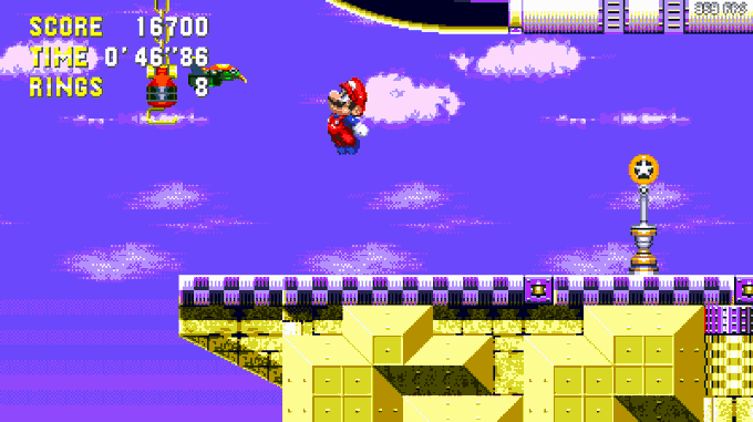 @shcontest I'm workin' on a project with @kaching720, @FireMarioFan1, @BluesteakDev, and @HazelSpooder that implements Mario into Sonic 3 Air, with some of his icon abilities from his 2d and 3d appearances, with entirely original sprites by Kaching720, and coding by me (1/?)