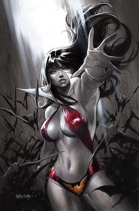 We've seen some early sneak peeks of the upcoming #Vampirella Holiday Special being written AND drawn by @robsonink and it's looking super fun!