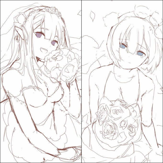렘,람 서로 앞머리 바꾼거로 그렸어요! 이제 너의이름은 그려야하는데 힘이 없어....