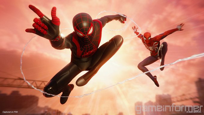 I like that @insomniacgames version of Miles' suit is mostly inspired by Dave Marquez's version of the suit. The eyes, the web pattern, the Spider logo and the big red is literally the same, while adding their own little touch to it. (Also he takes the same position in 3rd photo)