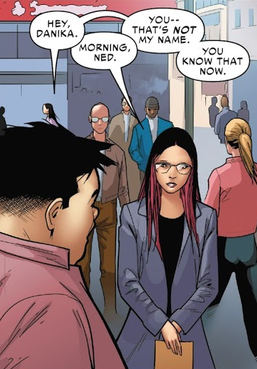 To not reveal Miles' identity, Ganke couldn't reveal his real name to his gf, Danika. Instead, he asked her to call him Ned. Most likely a reference to the MCU where Ned is mostly inspired by Ganke. (Those issues came out after Homecoming)