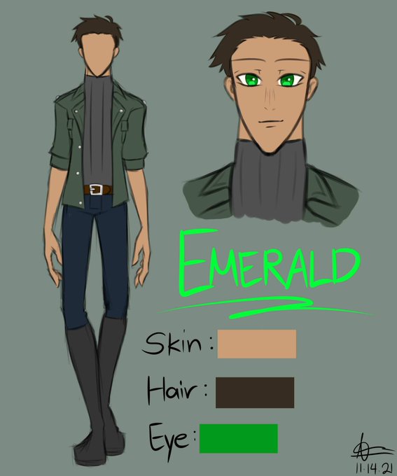 Sooooo, here is my Official OC’s Ref. Meet Emerald Jay Chronus or just Emerald, he is a half Crystal Golem despite appearances and he is my channel mascot. He has lore but that is a story for another day buuuut yeah 😁! Art by @AzreHowle could not be happier about the result!!!!!