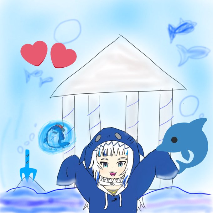 下手だけどスマホで始めて頑張って描きました!恥ずかしい…(がうる・ぐら) Gawr Gura is cute! #gawrt