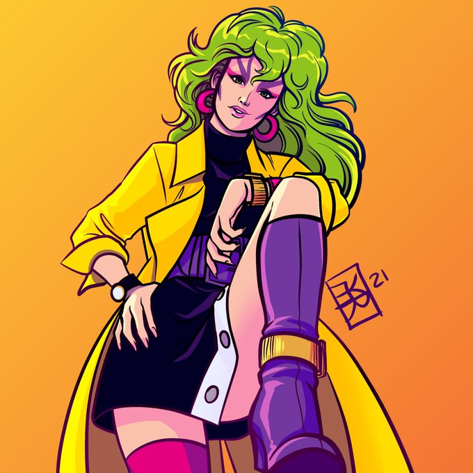 Here's a closer look at the Pizzazz illustration I did for her focus episode of Video Game Fashion Police (up on YouTube for anyone interested!) #jem #jemandtheholograms #pizzazzgabor