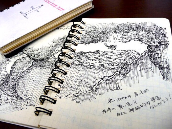 仕事用だと出せない絵が多いので趣味のダイビングの絵日記。0.2mmのロットリングペンで下書き無しの一発描きにPCで彩色。海の中の泡のプチプチ音が好きです♪