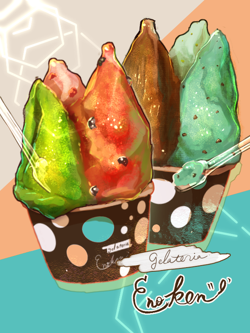 30+90分ジェラート(トリプル×2)!! #食べ物イラスト #foodillustration