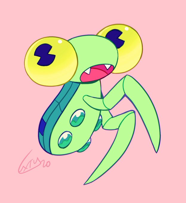 This mutant #Pokemon still wears the shed skin from its prevo to protect its soft body. The swirl on its jaw is apparently its tongue.