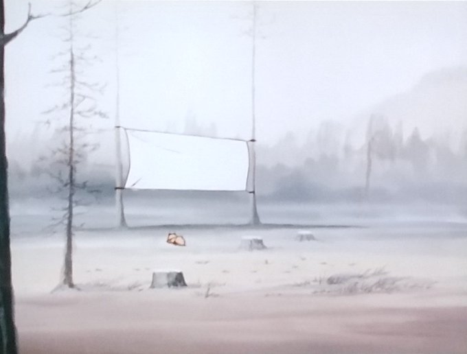 朝、子キツネが目覚めたのは、幻燈会会場。