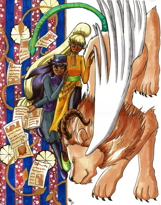 Howdy howdy! Time for another character for #Blacktober! This is Emira Vesna du Nor Madain/Victory Call! (Emira is her title, meaning crown princess.) She's a summoner from the country of North Madain. You can read about her the webcomic The Electric Rose! (link below)