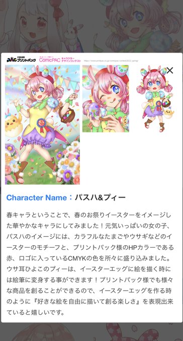 プリントパック様(@printpac_jp )の春キャラコンテストで秀逸作品賞をいただきました🌟💕