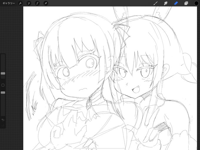 久しぶりに船長以外描いてるんですけど、ノエちゃん装備難しすぎて詰んだ。 これは完成しないラフ。