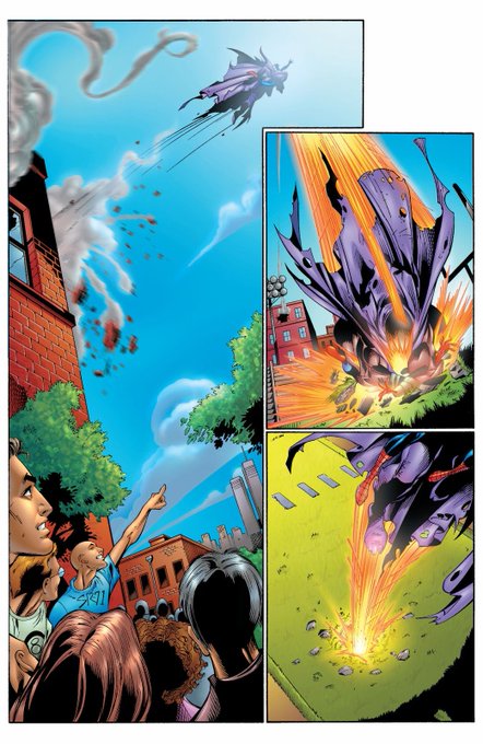 Peter meets The Green Goblin for the first time, attacking his school. This is where their rivalry started. (Ultimate Spider-Man #6)