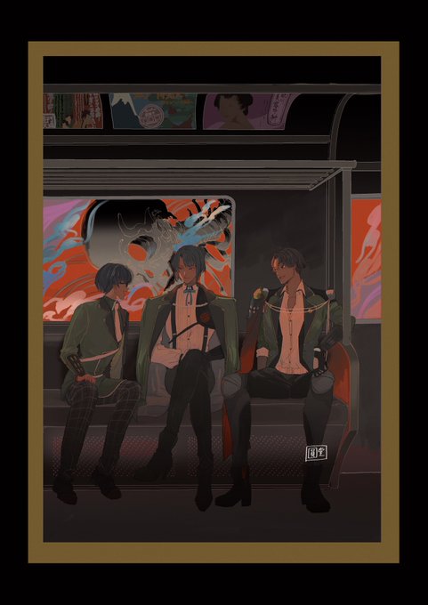#イラストを4枚貼ると秋風に乗って絵柄を好いてくれる人の元へ届くらしい 色が暗い