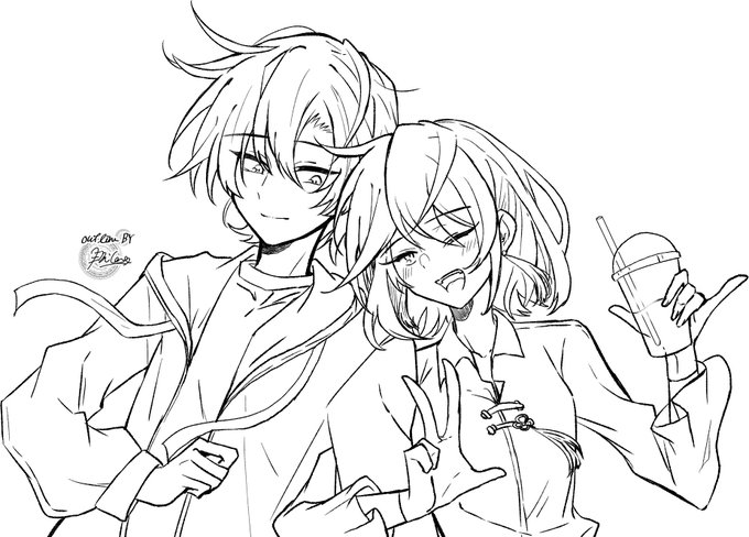 #線画を晒すと誰かが色を塗ってくれるかもしれない 兄坑2枚とかなたそ1枚とオリキャラcp1枚あります 誰か恵んでくださいナ!!!!!!