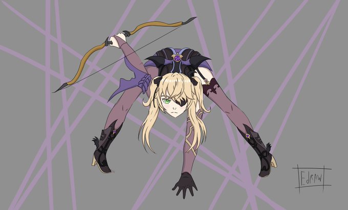Well, after a long time, i could end this drawing of Fischl!, im trying to learn more complicated poses// Luego de mucho tiempo pude termina este dibujo de Fischl, estoy tratando de aprender poses más complicadas.