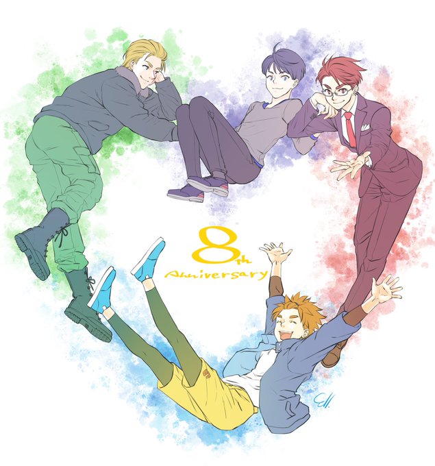 ちまちま描いてて大遅刻になってしまいましたが、にりんぎ8周年おめでとうございます!!メグロくんも中島さんも大好きだけれど、やっぱり原点はHYSKの4人だよね!み〜んな大好きです😘😘 これからも推してまいります! #にりんぎ二次創作