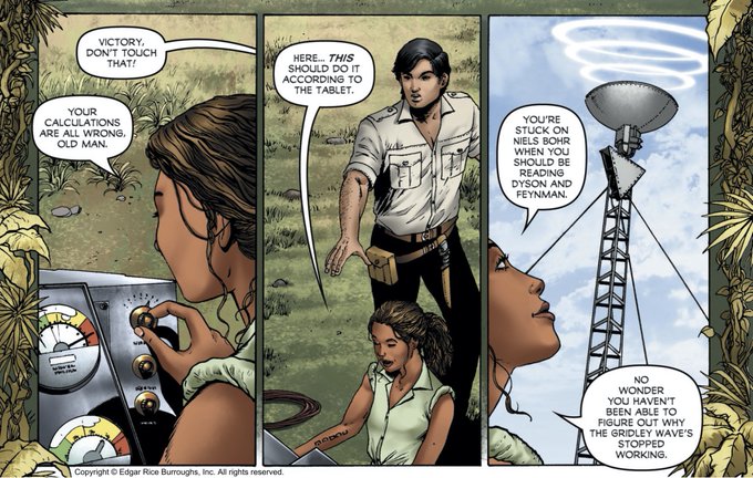 In memory of Freeman Dyson, who passed today. Excerpt from the "Pellucidar: Dark of the Sun" comic in the back of CARSON OF VENUS: EYE OF AMTOR #1, featuring Victory Harben and Jason Gridley. #FreemanDyson #VictoryHarben #ERBUniverse #EdgarRiceBurroughsUniverse