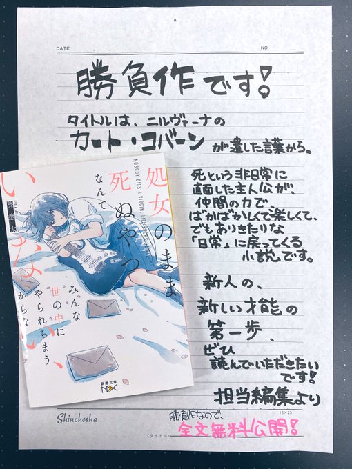 新人の小説です。そして、僕の今年の勝負作です。本当に勝負作なので、発売前ですが、全文公開します。「毎日更新」で、完結まで無料で読めます!