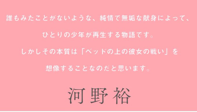 これは誰もみたことがないような、純情で無垢な献身の物語です。/河野裕