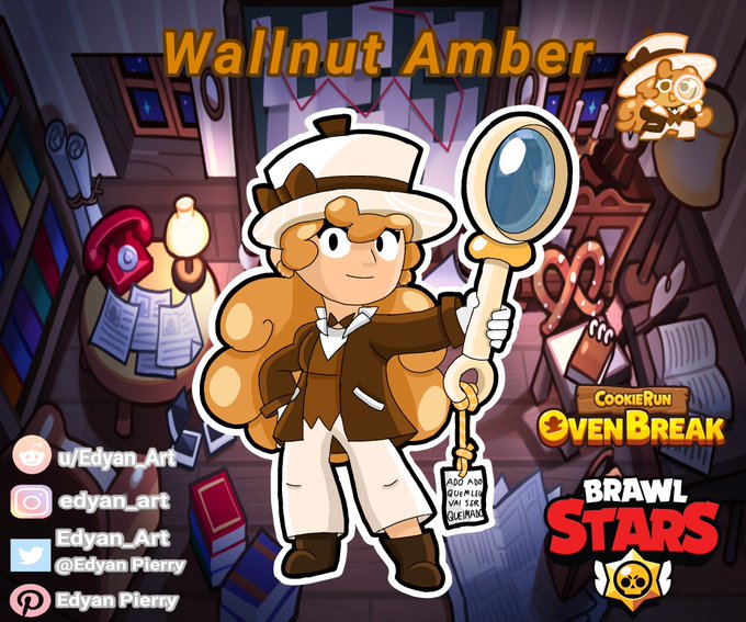 Skin para a Amber (Brawl Stars) baseada na personagem Wallnut Cookie (com a skin: classic disguise) do jogo Cookie Run: OvenBreak.