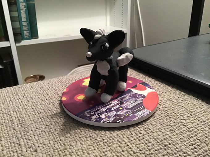 I took some photos with my clay wolves and drew them! Thread.