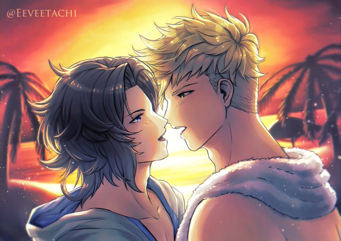 Almost kiss❤️ I got inspired to draw this by a recent Pixivision and now summer Lancey and Vane are appearing in the game! I need them so badly