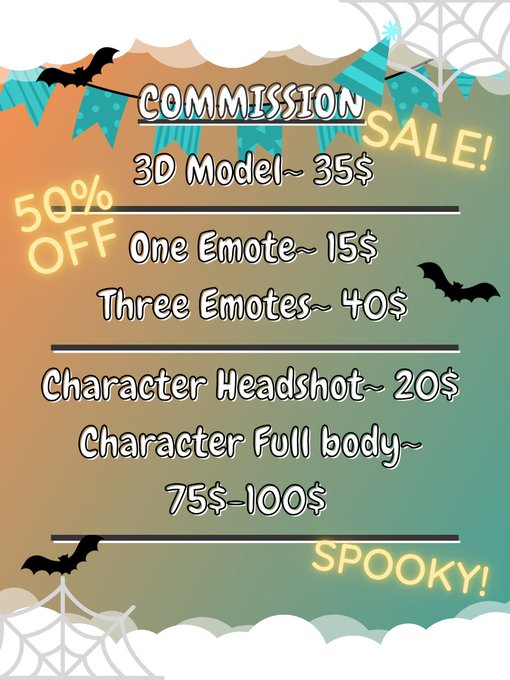 If you are looking for a talented artist for your art needs check our my daughter @Aris_RageGaming ! Spooky sale time is nearly over! Price list and examples of her emote work :D #emoteartist #artist #commissionsopen